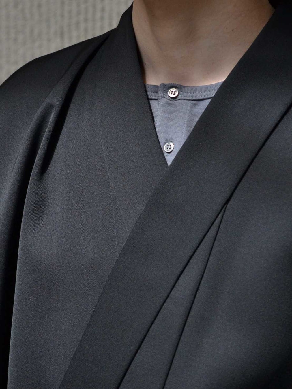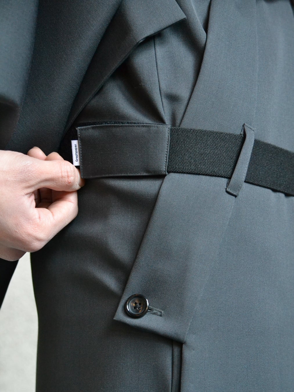 Graphpeperの定番アイテムであるシェフパンツに採用しているインサイドベルトを着物のウエスト部分に用いることで、着用時の手間と帯そのものを省いた快適な着心地を実現。生地には、通常ジャケットやコートに使用されるウールギャバジンを採用し、伝統的な着物の縫製で仕上げています。ご注文いただいた着物は、お客様の寸法に合わせてお誂えしてご納品いたします。ご自身の身体にあったオーダーメイドのため、より快適な着心地へとつながります。