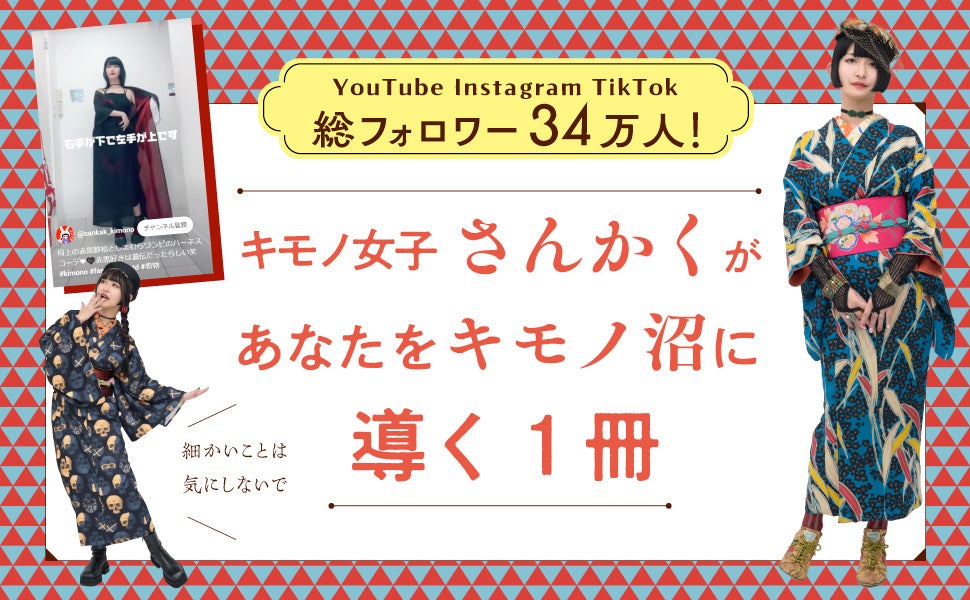 「着物を日常的に気軽に楽しむ生活」を提案する キモノインフルエンサー ”さんかく” は、SNSの総フォロワー数34万人を超え、20~60代の着物好きをはじめ、多くの方々の支持を集め、3月22日には著書『さんかくキモノのススメ』を発売しました(刊行は主婦と生活社)。