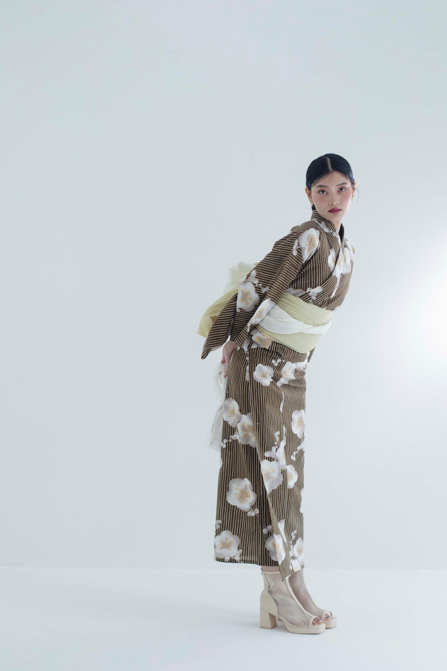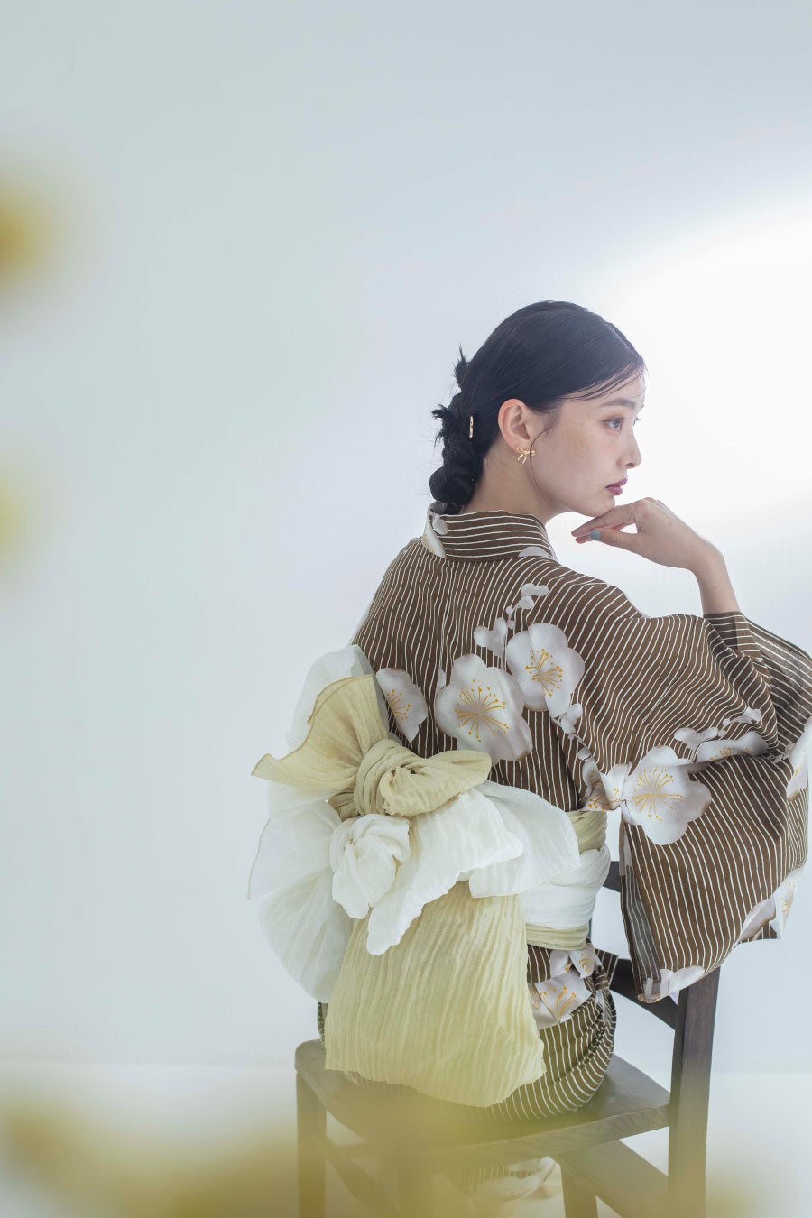 ブラウンの兵児帯がワンランク上の大人な女性に