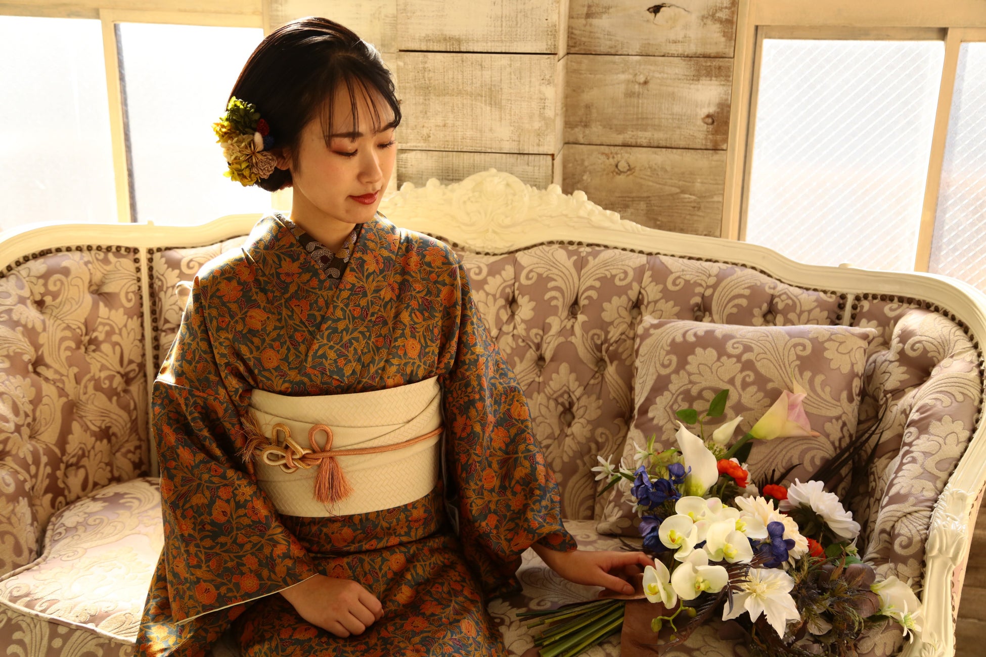 王道からモダンまで、幅広く豊富な着物だけでなく、帯や鞄などこだわりの小物も数多く取り揃えております。お客様の好みに合わせた幅広いコーディネートができる人気のプランです。