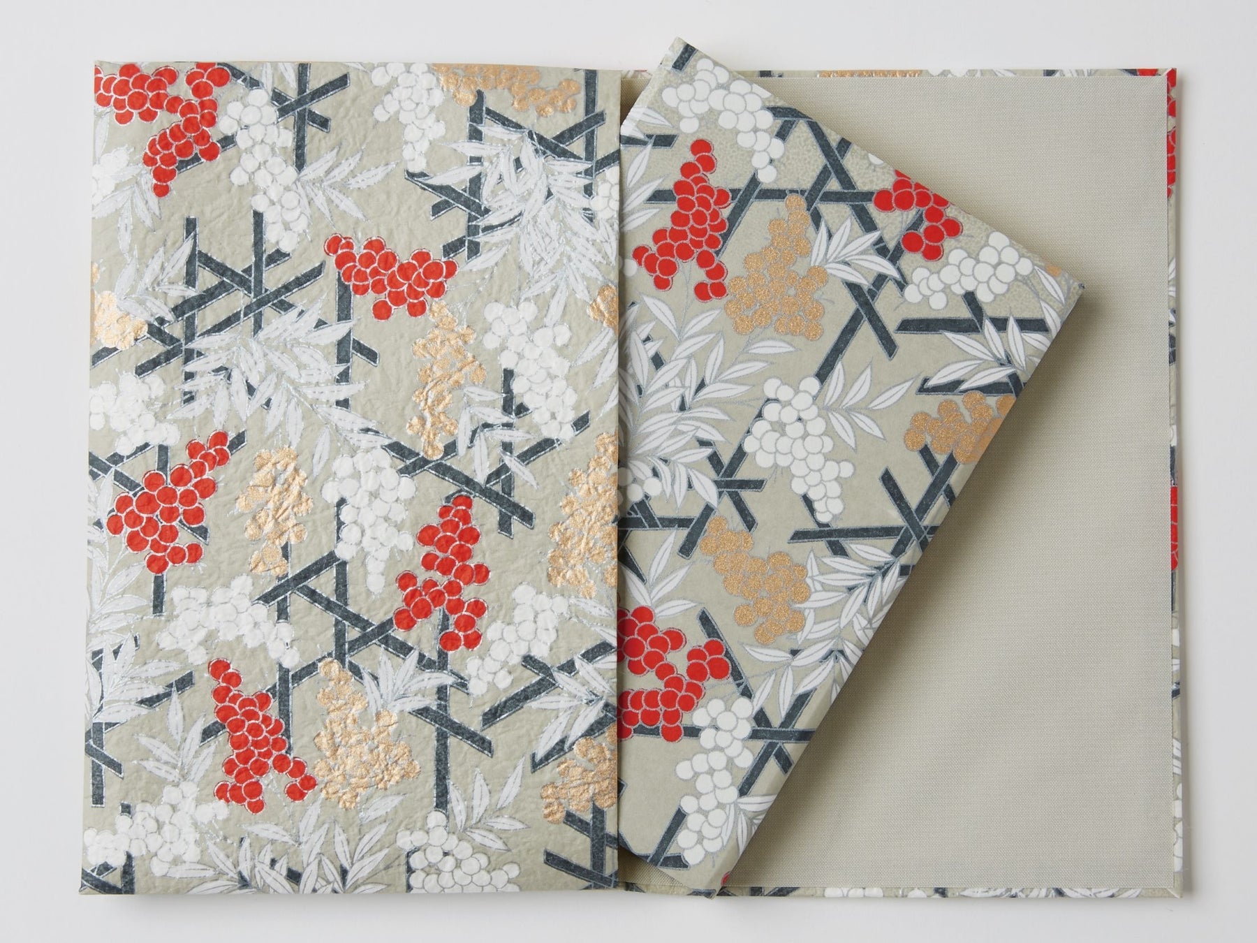 朱印帖は縁起のよい南天柄で、京友禅のきものを髣髴とさせる上品で華やかなデザイン。