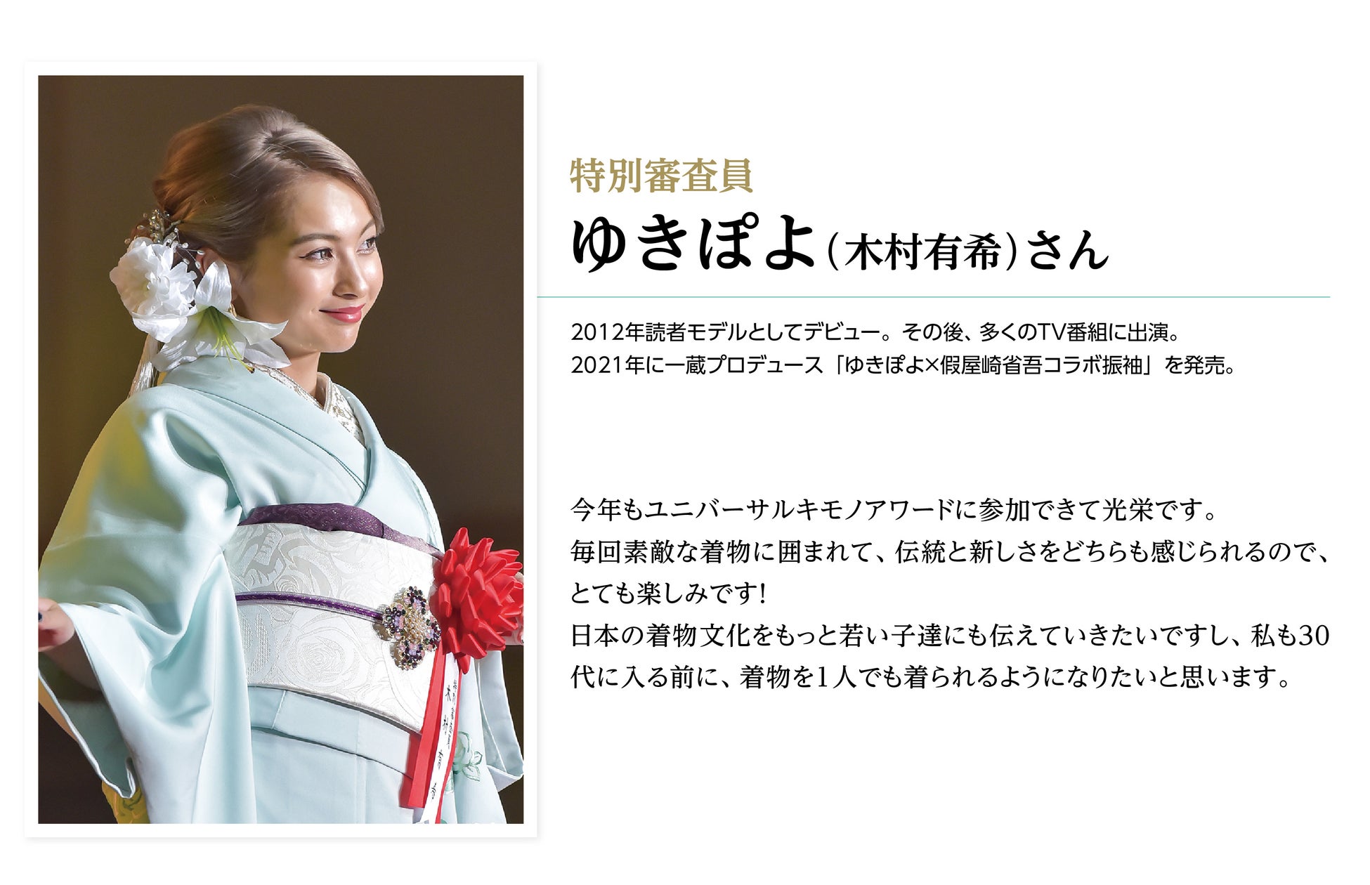 このコンテストを通じて、きものが本来持っている価値や新たな魅力と可能性を、最新トレンドと併せて発信しています。