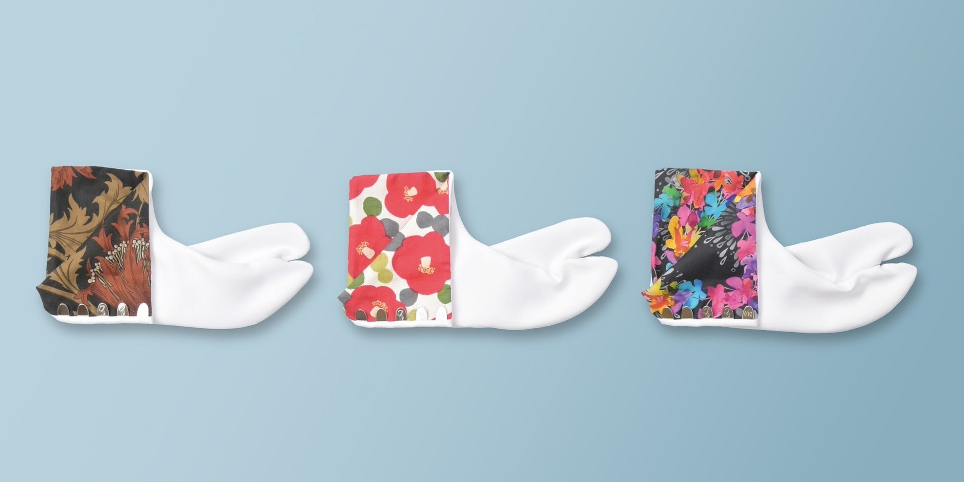 裏地にはカラフルな柄生地をあしらい、足首を軽く折り返せば、ちらりと覗く遊び心が装いにアクセントを添えます。伝統工芸士をはじめとする職人たちの手によって、一点一点、丁寧に仕上げられた「新しい時代の足袋」です。